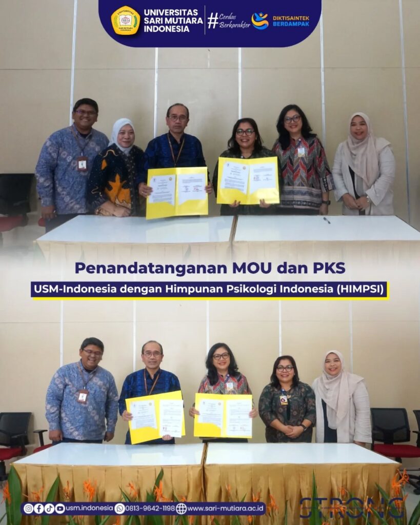 USM-Indonesia | Universitas Sari Mutiara Indonesia melaksanakan Penandatanganan Kerjasama dengan Himpunan Psikologi Indonesia (HIMPSI) bertempat di Ign. Washington Purba Hall USM-Indonesia, Rabu (25/06/2025).